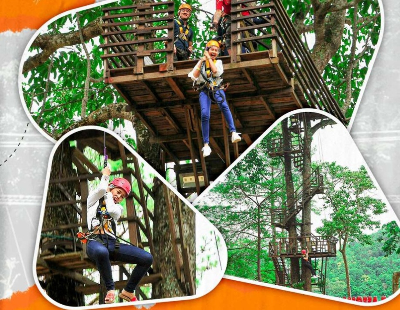 - 패키지 A: 34개의 짚라인 스테이션과 정글 코스터 1 라운드가 포함된 패키지로 짚라인에 중점을 둔 프로그램입니다. 소요 시간: 60분